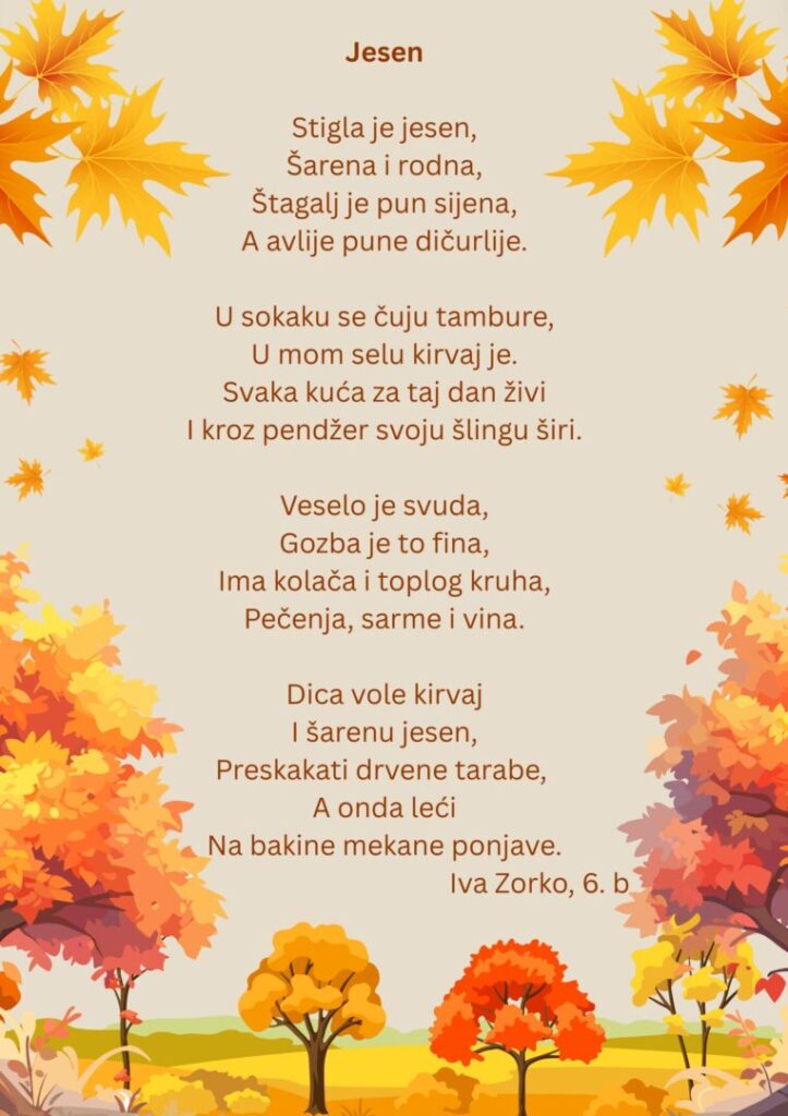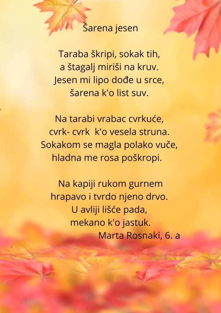 S ponosom su predstavile našu školu vlastitim pjesmama pisanima na ikavici i lokalnom govoru, vješto koristeći motive i riječi iz slavonskoga dijalekta. Svojim su radovima pokazale ljubav prema tradiciji, zavičajnom jeziku i stvaralaštvu, a njihova kreativnost i originalnost lijepo su se uklopile u bogat program susreta.
