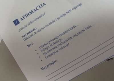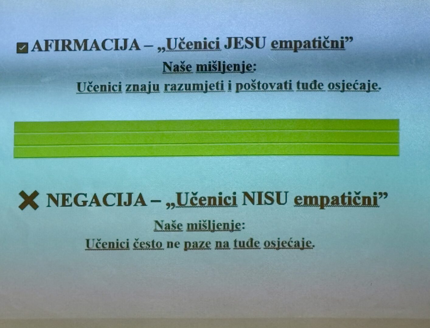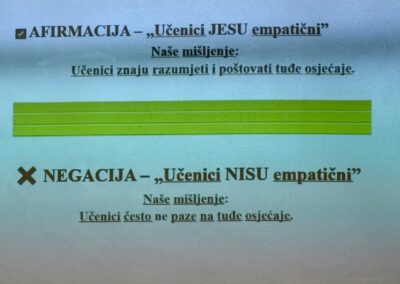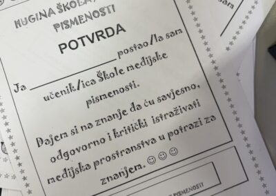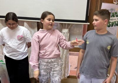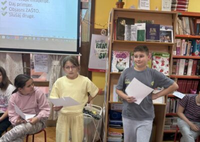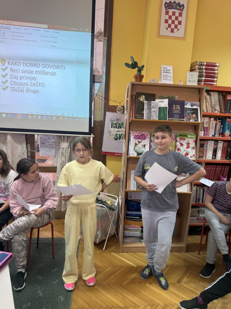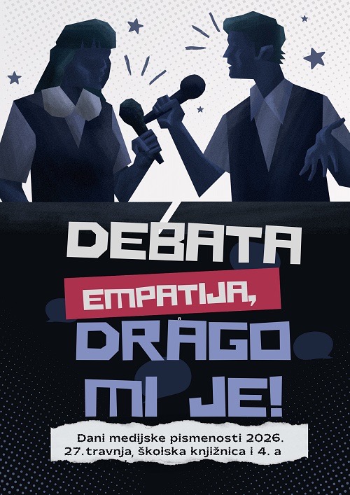Tradicionalno u školskoj se knjižnici obilježavaju Dani medijske pismenosti. Ove godine odluka je pala na vježbanje komunikacijskih vještina, javnog nastupa i vještina slušanja. Vođeni uputama školske knjižničarke, učenici 4. a razreda debatirali su na temu postojanja ili nepostojanja empatije u razredu, školi i životu offline i online. Podijeljeni su na afirmacijsku i negacijsku skupinu s jasno izraženom tezom, vođeni koracima koje debata iziskuje. Predstavili su tezu koju zagovaraju jasno je argumentirajući, potkrijepivši je primjerima iz života, škole, razreda… Grupa koja je iznijela više argumenata, jasno i glasno ih iskomuniciravši, po mišljenju troje sudaca odnijela je pobjedu. Ovoga puta to je bila negacijska skupina koja je zagovarala tezu: “Učenici nisu dovoljno empatični.” Zaključno, shvatili su kako je lakše iznositi negativne primjere jer oni su nažalost uočljiviji od pozitivnih koji ponekad prođu “ispod radara” učenika i ljudi općenito. No, oni postoje u sitnicama i lijepim djelima koji se podrazumijevaju i nedovoljno cijene. Do kraja tjedna učenici će svaki dan zapisivati primjere empatije koje uočavaju u školi, kod kuće i u svakodevnom životu, kako bi je snažnije osvijestili i cijenili.