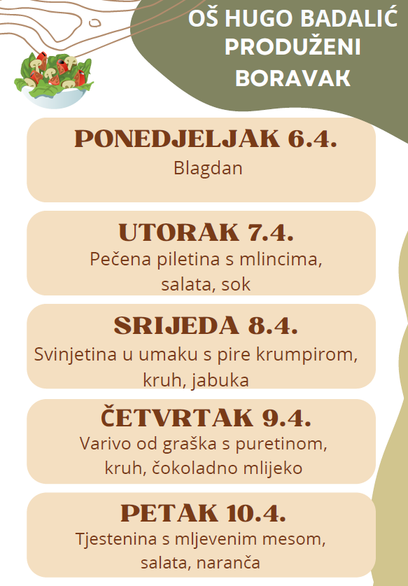 U nastavku možete pronaći tjedne jelovnike užine u produženom boravku: