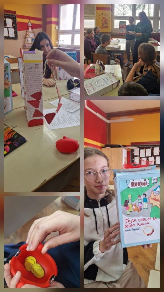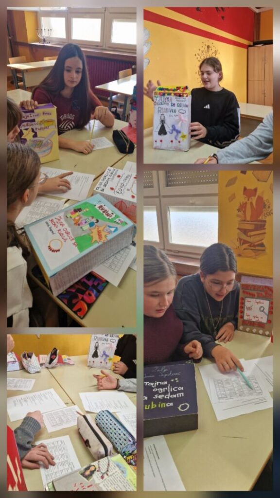 Na satu Hrvatskoga jezika učenici 6. a obradili su lektirno djelo Tajna ogrlice sa sedam rubina na malo drugačiji način – kroz poduzetnički projekt „Kutija pahuljica u novom ruhu lektire“.