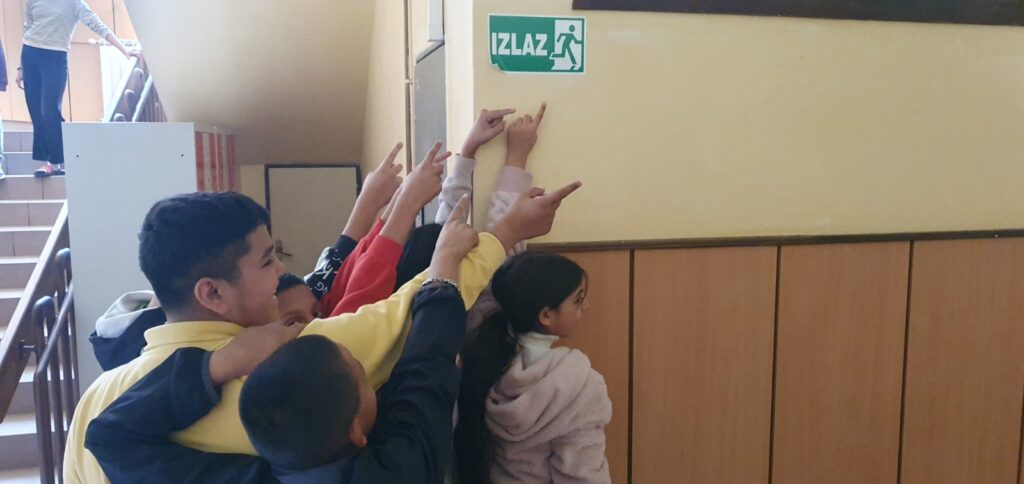 Učenici šestog razreda s nastavnikom Pejom Jozićem odradili su vježbu evakuacije u slučaju izvanredne situacije. Najprije je bilo govora koje su to izvanredne situacije, kako dolazi to njih te je naglašena važnost mirnog ponašanja bez panike. Nakon toga učenici su krenuli s vježbom evakuacije, odnosno s potragom za predviđenim pravcem evakuacije. Uspješno su pronašli i pročitali oznake na zidovima škole te izveli plan evakuacije i napustili prostor škole.